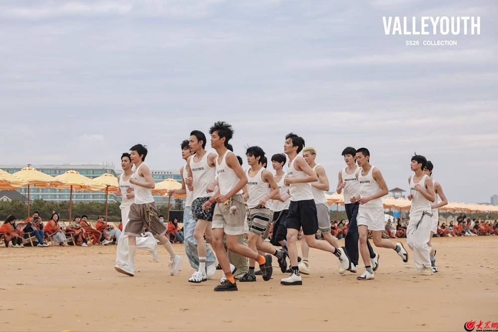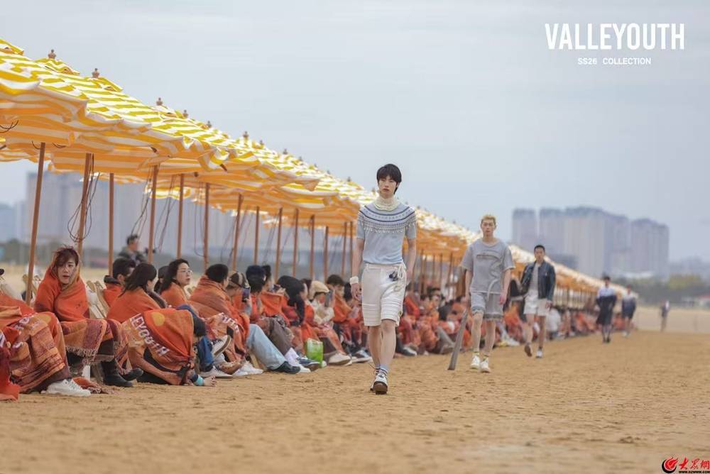 r4月8日,VALLEYOUTH山谷少年SS26沙滩实景大秀在青岛西海岸新区银沙滩启幕。以无垠海岸为天然T台、以落日余晖为光影布景、以松涛海浪为背景音效,一场融合自然美学、情感叙事与原创设计的时尚发布,在2000余米月牙形银沙滩上徐徐展开,绘就山海一色与时装走秀相融共生的绝美画卷,为青岛西海岸新区文旅融合注入全新活力,提前引爆“五一”旅游热潮。